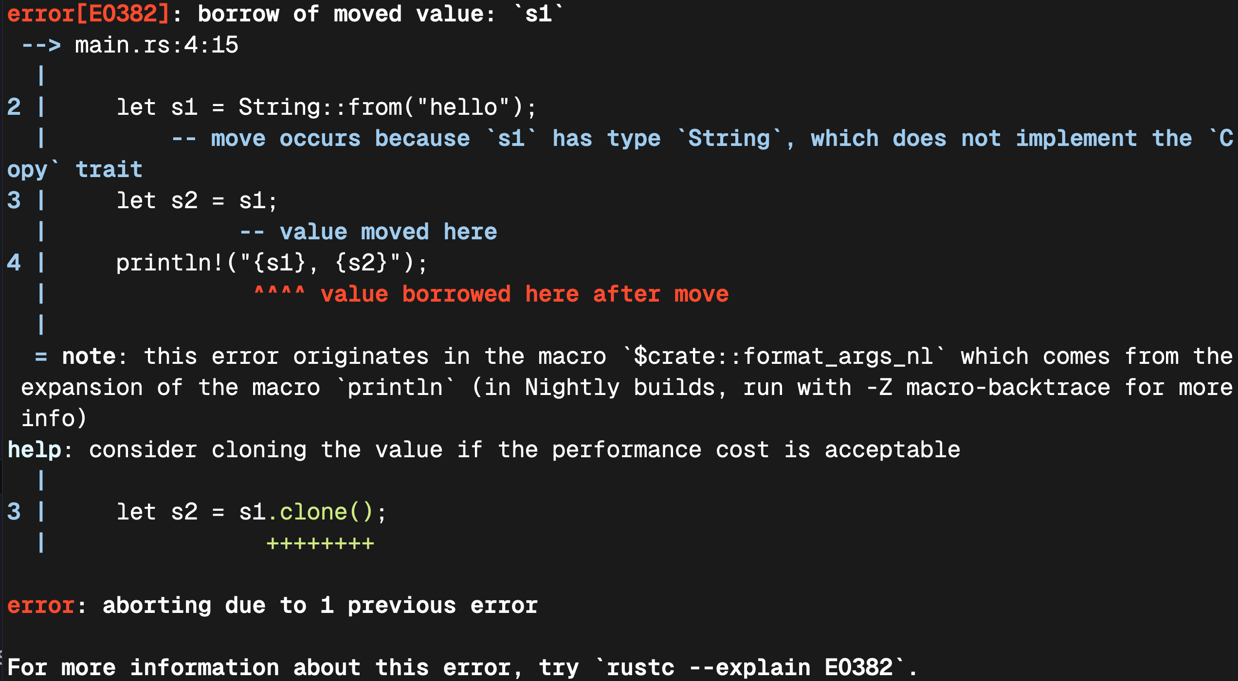 Copy trait, variables that use it do not move, but rather are trivially copiedDrop trait, it cannot implement the Copy traitPassing a Value to a Function Can Transfer Ownership