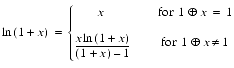 1.0+xin the third line in extended precision and compare the result with1.0. When the same expression is passed to the log function in the sixth line, however, the compiler may store its value in memory, rounding it to single precision. Thus, ifxis not so small that1.0+xrounds to1.0in extended precision but small enough that1.0+xrounds to1.0in single precision, then the value returned bylog1p(x)will be zero instead ofx, and the relative error will be one--rather larger than 5. Similarly, suppose the rest of the expression in the sixth line, including the reoccurrence of the subexpression