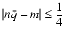 1/4. Recall that the difference between m and the next larger representable number is 1 and the difference between m and the next smaller representable number is either 1 if m > 252 or 1/2 if m = 252. Thus, as |ne|