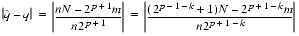 Finally, we are left to consider cases in which q is not the correctly rounded quotient due to double-rounding. In these cases, we have |e| < 1/2 + 2-(d + 1) in the worst case, where d is the number of extra bits in the extended double format. (All existing extended-based systems support an extended double format with exactly 64 significant bits; for this format, d = 64 - 53 = 11.) Because double-rounding only produces an incorrectly rounded result when the second rounding is determined by the round-ties-to-even rule, q must be an even integer. Thus if n has the form 1/2 + 2-(k + 1), then ne = nq - m is an integer multiple of 2-k, and