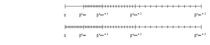 FIGURE D-1 Normalized numbers when= 2, p = 3, emin = -1, emax = 2