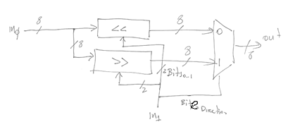 Where we also introduced a third option for the second operand of the ALU, Imm3 from the instruction and is needed for SHIFT.