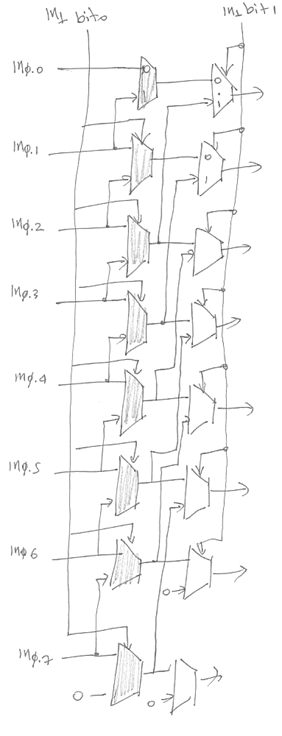 We will the symbol on the right. It turns out that all we need is just wires. We are replicating the sign bit.