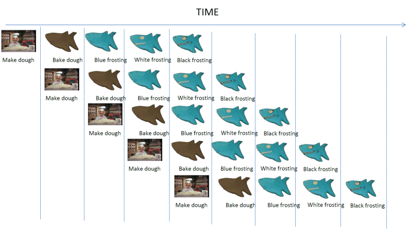 pipeline now proceeds in stages each taking the same amount of time as baking