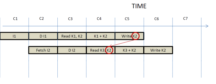 through an instruction that possibly follows immediately our ADD. Our pipeline