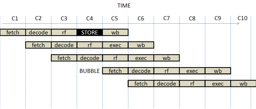 applies to STORES that update memory in the EXEC stage. The only instructions