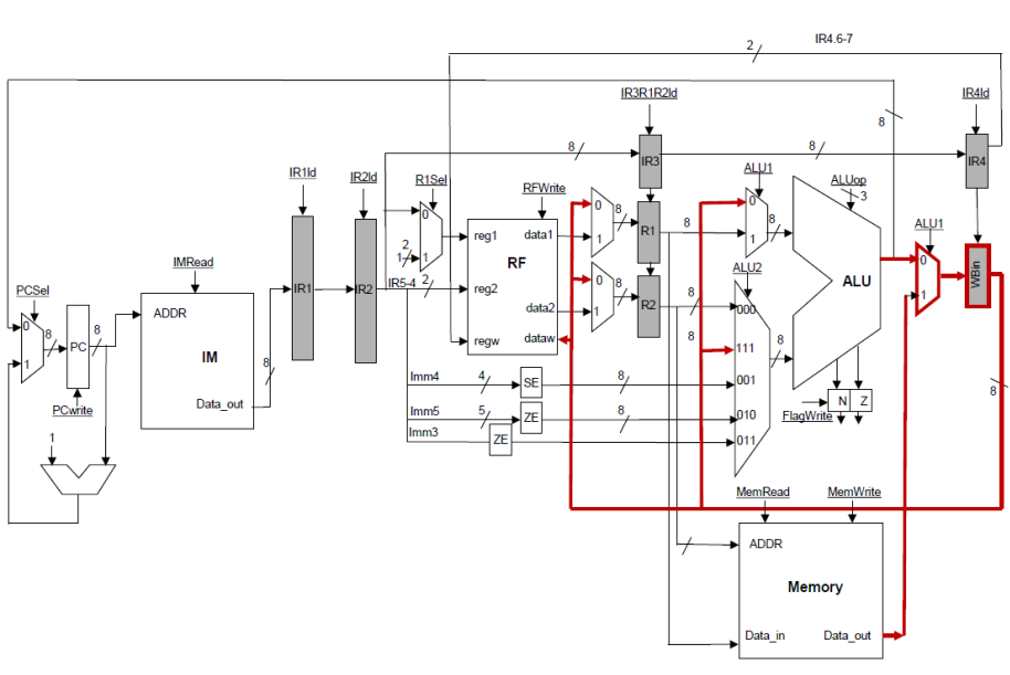 has bypass paths that would correctly bypass the value from WB to EXEC or RF,