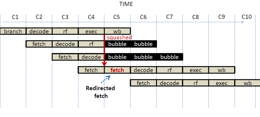misspeculation at the end of their EXEC stage. Instructions that follow the